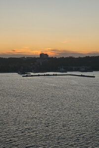 Atmosfera serdeczności i pozytywnych emocji towarzyszyła nam zarówno na promie, jak i podczas całej trasy rowerowej. Przed wejściem na prom w Gdyni załadowaliśmy rowery na specjalne stojaki, a gdy wypływaliśmy z portu, towarzyszył nam piękny zachód słońca.