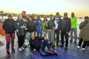 Atmosfera serdeczności i pozytywnych emocji towarzyszyła nam zarówno na promie, jak i podczas całej trasy rowerowej. Przed wejściem na prom w Gdyni załadowaliśmy rowery na specjalne stojaki, a gdy wypływaliśmy z portu, towarzyszył nam piękny zachód słońca.