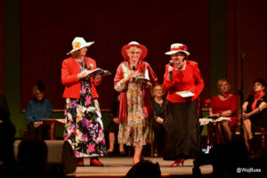 14 listopada 2025 r. w pięknej sali Dworu Artusa zobaczyliśmy na scenie i głośno oklaskiwaliśmy naszych wspaniałych aktorów. A wszystko za sprawą Marii Nowakowskiej, autorki i reżyserki sztuki „Seniorzy – Seniorom”. Zaprosiła ona do współpracy śpiewających seniorów oraz sekcje tańca w kręgu, poetycką i plastyczną. Były piękne teksty naszych poetek, taniec, skecze, monologi i oczywiście porywające piosenki.