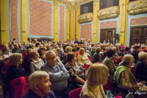 14 listopada 2025 r. w pięknej sali Dworu Artusa zobaczyliśmy na scenie i głośno oklaskiwaliśmy naszych wspaniałych aktorów. A wszystko za sprawą Marii Nowakowskiej, autorki i reżyserki sztuki „Seniorzy – Seniorom”. Zaprosiła ona do współpracy śpiewających seniorów oraz sekcje tańca w kręgu, poetycką i plastyczną. Były piękne teksty naszych poetek, taniec, skecze, monologi i oczywiście porywające piosenki.